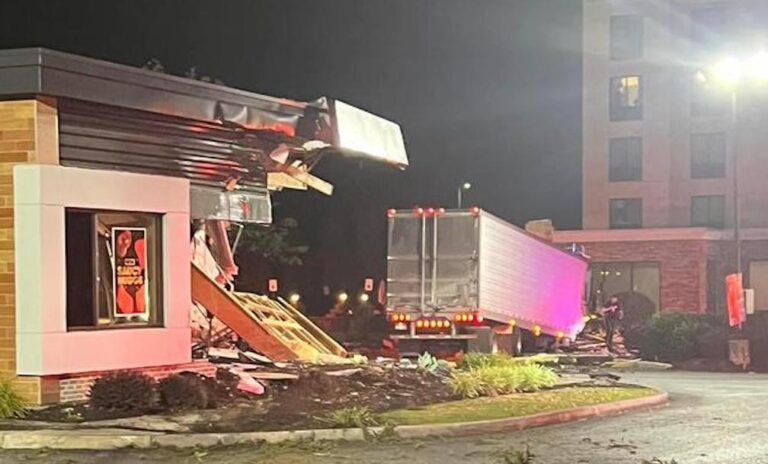 Police say the driver had just left Lancaster, Pennsylvania, en route to Washington state, and had claimed that “his glasses fogged up and he could not see. He went straight off of PA 283 West into the Wendy’s lot and struck the building.”