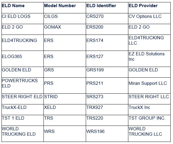 Motor carriers and drivers who use the ELDs listed above must take the following actions: