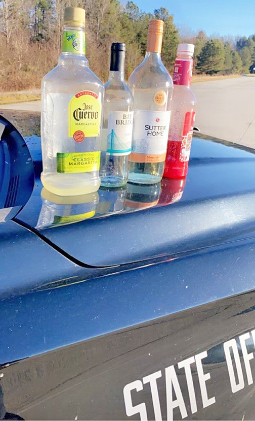 The bottles included Jose Cuervo Classic Margarita, Sutter Home wine and two other bottles of some type of wine, a GDPS photo showed.