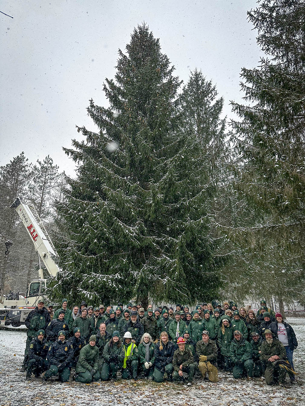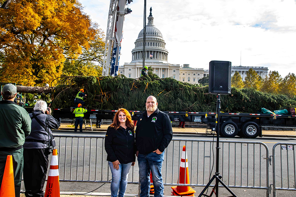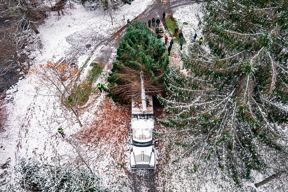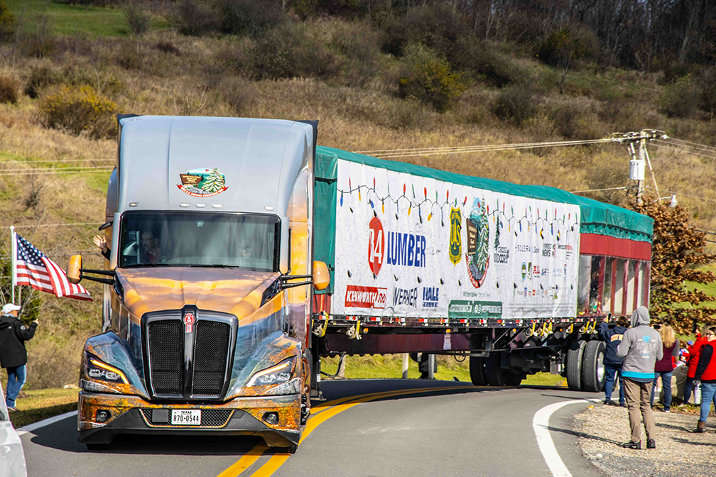 The two-week trip, which started Nov. 4, included planned stops to give people a chance to get up close and personal with the 63-foot Norway spruce. Dean says an atmosphere of pride and excitement surrounded the duo as they spent two weeks piloting a Kenworth T680 Signature Edition along the tree’s journey.