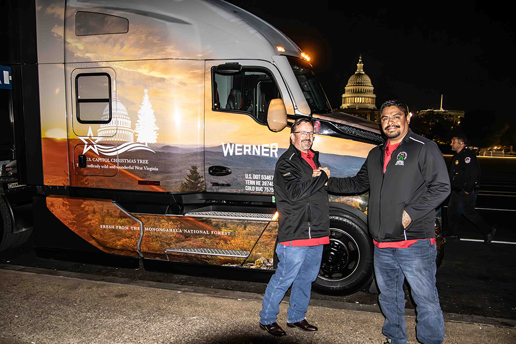 Working together with fellow Werner driver Jesus Davila, Dean hauled the 2023 U.S. Capitol Christmas Tree, popularly known as “The People’s Tree,” from the Monongahela National Forest in West Virgina to the lawn of the U.S. Capitol building in Washington, D.C.