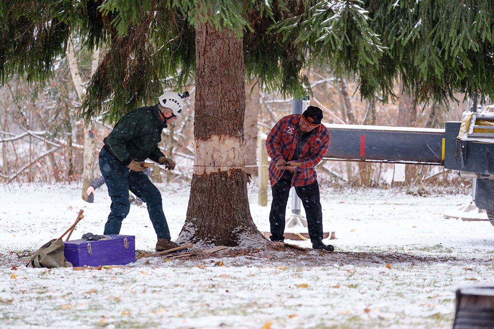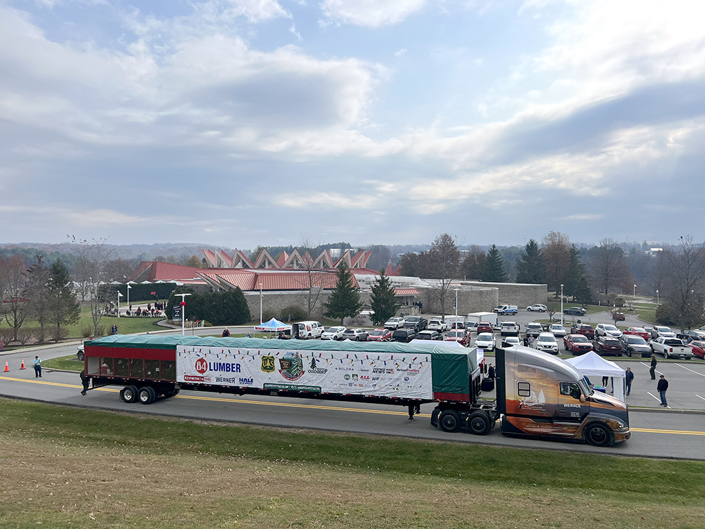 For Dean, the trip presented multiple technical challenges, from bringing the tree down a mountain in falling snow to navigating the winding roads of West Virginia. He says he even learned some new tips from Davila who was more used to driving an automatic tractor.