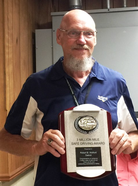 HOLLAND, Mich. — Professional driver Robert “RB” Wolford has logged his three-millionth consecutive mile without a single accident while driving for Holland.