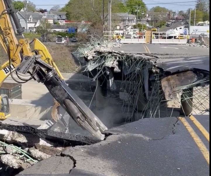 A live camera operated by the Connecticut Department of Transportation on Saturday showed excavators and bucket loaders scooping up rubble from the destroyed Fairfield Avenue overpass above I-95 in Norwalk and dumping it into large containers and dump trucks to be hauled away.