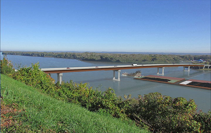 Illinois and Missouri shared the cost of the $60 million bridge, which links Louisiana, Missouri and Pike County in Illinois, about 90 miles northwest of St. Louis. The project doubled the width of the original bridge and eliminated a 40-ton weight restriction while adding lanes for bikes and pedestrians.