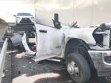 The collision caused a white 2021 Range Rover to break free from the Dodge’s trailer and land in the roadway. Police said a white 2021 Volvo 18-wheeler traveling in front of the Dodge was also struck by the Peterbilt, causing the Volvo to be pushed into the back of another semi’s trailer.