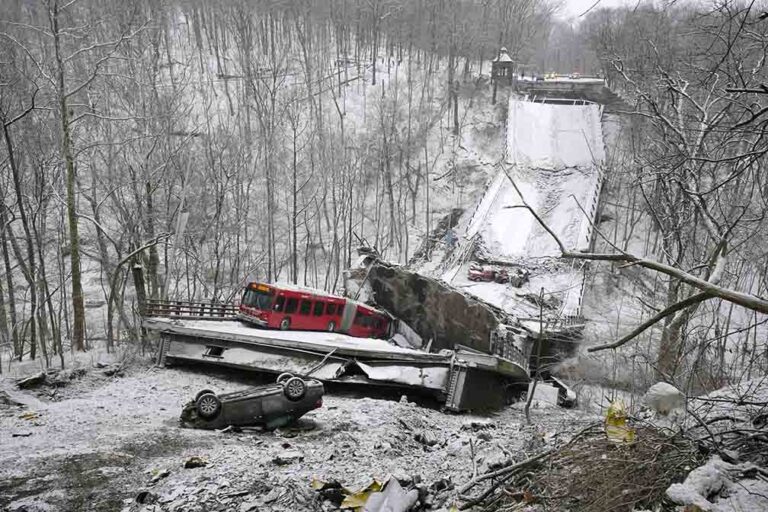 The collapse occurred just hours before President Joe Biden visited Pittsburgh to tout a new $1 trillion infrastructure law.
