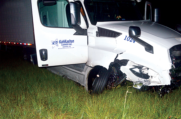 While Connor Dzion sat in his car waiting for the wreck to be cleared, a rig driven by Kahkashan Carrier Inc.’s Yadwinder Sangha of Canada slammed into a parked line of cars behind the initial wreck, pancaking Dzion’s sedan and causing his head to be crushed between Sangha’s grill and the car in front of him.