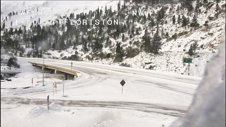 Snow-choked Interstate 80 has been closed since Sunday from the Nevada state line to Placer County, California, although Caltrans said U.S. 50 reopened late Monday for vehicles with chains or four-wheel drive.