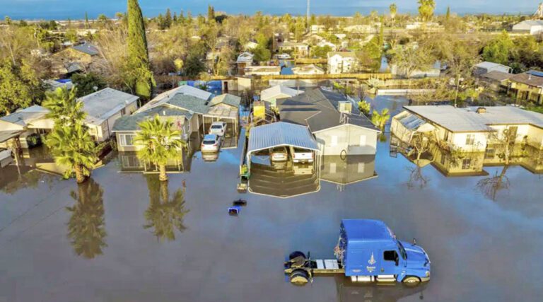 Raging waters crested the banks of Bear Creek and flooded parts of the city of Merced and neighboring Planada, a small agricultural community along a highway leading to Yosemite National Park.