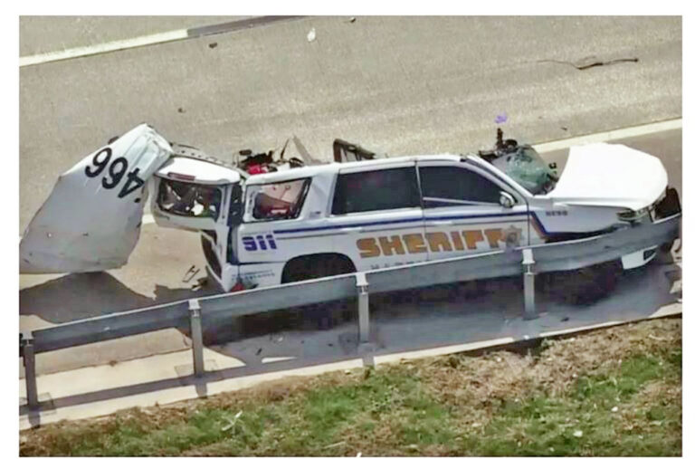 Crash scene photos showed Howard’s patrol SUV smashed on its left side with the roof ripped off.