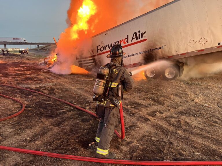 At approximately 5:30 a.m., South San Joaquin County Fire Authority responded to a report of a vehicle accident involving two big rigs, with one of them being fully involved. No injuries have been reported. The location of the accident was in Tracy near Patterson Pass Road according to media reports in the area.