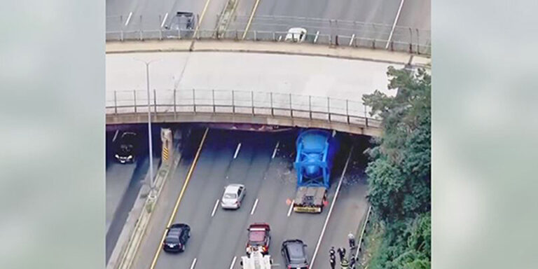 BOSTON — The Massachusetts Department of Transportation (MassDOT) is suing an Alabama trucking company after a rig hauling an oversized metal tank struck and heavily damaged an Interstate 93 MassDOT overpass in 2021.