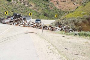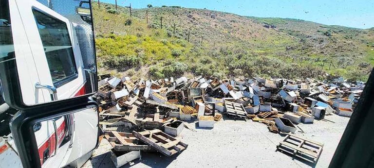 The tractor-trailer was carrying approximately 200 beehives, according to a post on the Park City Fire District’s Facebook page. Video shows the rolled over truck and several bee hives lying broken on the side of the highway.