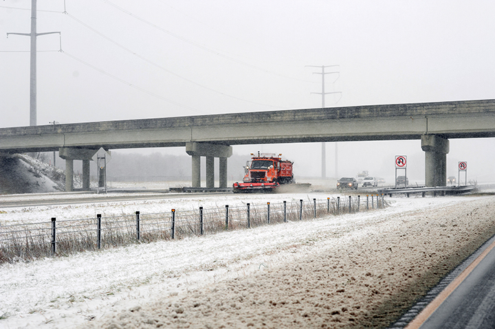 Snowplows can create “snow clouds” when clearing roads at slower speeds. Warning signs can also be used at other times of year for uses such as maintenance work when crews are repairing high-tension cable median guard or striping roads.