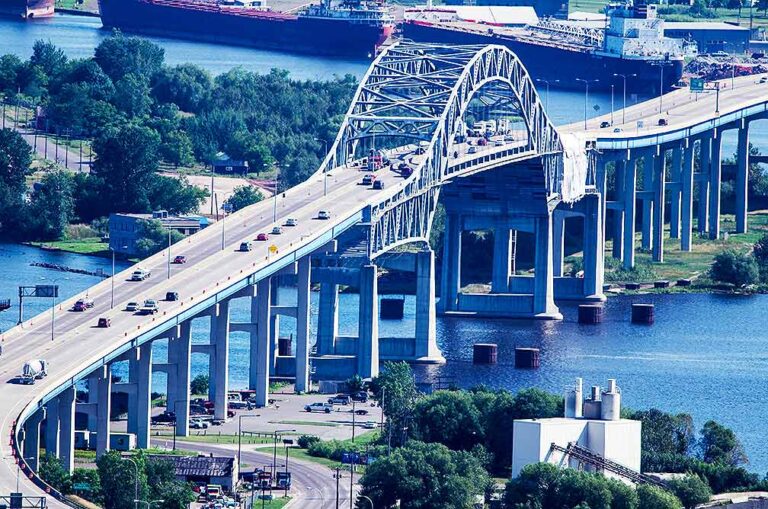 It serves as a key connection for freight and commercial traffic in the region as well as an important hub for shipping on the Great Lakes. Another bridge, the Richard I. Bong Memorial Bridge provides a second connection between Duluth and Superior but is not a good option. The next nearest crossing is 26 miles away with freight traffic having to detour 75 miles in Minnesota and 50 miles in Wisconsin.