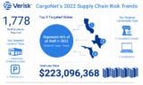 JERSEY CITY, N.J. — A new report from CargoNet documented 1,778 supply chain risk events — most notably thefts — across the United States and Canada in 2022, an increase of 15% from 2021.