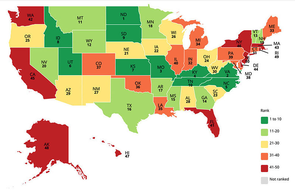 A number of states with large populations and busy highways performed well in the overall rankings, including Virginia (2nd overall), Missouri (third), North Carolina (fifth), Georgia (14th), and Texas (16th).
