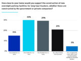 When asked, “How close to your home would you support the construction of new overnight parking facilities for long-haul truckers?” the majority (80%) only support facilities that are at least three miles from their homes, and 5% said they did not support new construction at all. Only 15% said they are comfortable with facilities being within 2 miles of their homes.
