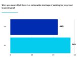 When asked, “Were you aware that there is a nationwide shortage of parking for long-haul truck drivers?” 56% answered, “no.”