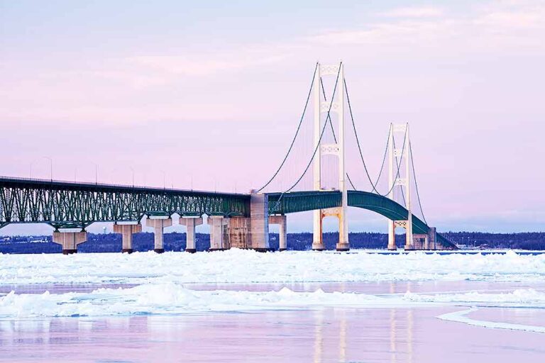 - When ice falls from the bridge’s towers and cables, the Mackinac Bridge Authority closes the bridge to traffic for safety.