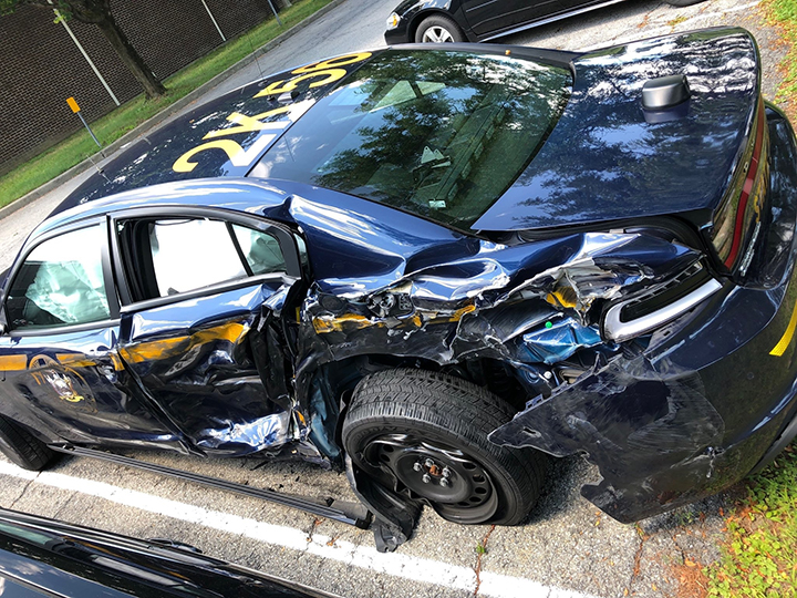 The trooper was parked on the westbound shoulder of Interstate 84 in Kent, New York, while monitoring traffic when the patrol car, with the trooper inside, was struck by a tractor-trailer. The driver of the rig fled the scene. The trooper was taken to a local hospital, where he was treated for his injuries and released.