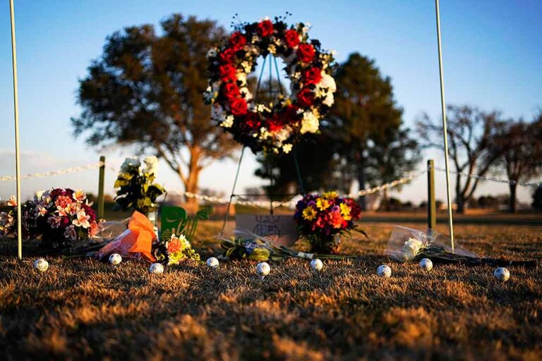A memorial was set up Wednesday at the course near campus where the team practices. There were flowers, golf balls and a handmade sign with a cross and the initials USW.