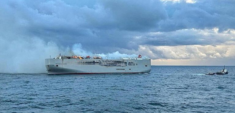 The cause of the fire, while still officially undetermined, has raised questions about “what blind spots there are when transporting electric cars powered by batteries – which when they catch fire can’t be extinguished with water, or even by oxygen deprivation,” said Nathan Habers, spokesperson for the Royal Association of Netherlands Shipowners (KVNR).
