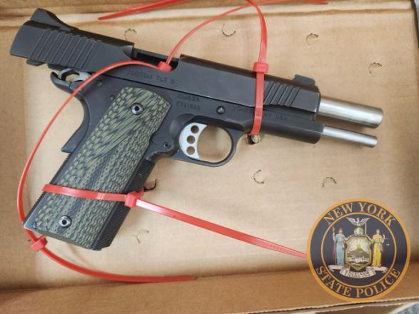 “Troopers out of SP Buffalo responded to a shots fired at an occupied tractor trailer while traveling on the I-90 westbound before exit 50,” the New York State Police said. “Troopers were dispatched to the area and while enroute they were notified of a second incident of a hit-and-run side swipe collision of a passenger car involving a tractor trailer suspected in the shooting on the I-90. NYSP Commercial Vehicle Enforcement Unit located and stopped the tractor trailer believed to be the vehicle involved in the shooting and the hit-and-run on Union Road near Walden Avenue in the town of Cheektowaga. The operator, Dylan J. Cottingham was taken into custody and a search warrant was obtained for his tractor trailer. After searching Cottingham’s vehicle, a semi-automatic .45 caliber handgun and multiple magazines were located.”