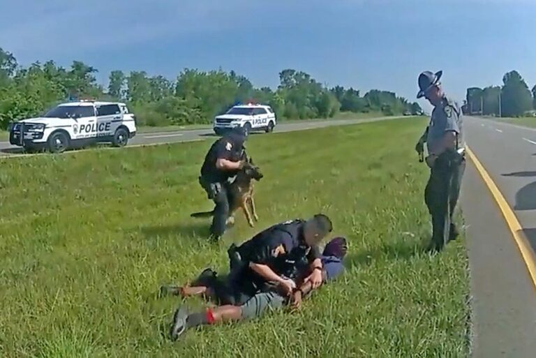 The body camera video shows Speakman holding back the dog, and a trooper can be heard off-camera repeatedly yelling, “Do not release the dog with his hands up!” However, Speakman deployed the dog and it can be seen in the video attacking Rose, who said, “Get it off! Please! Please!”