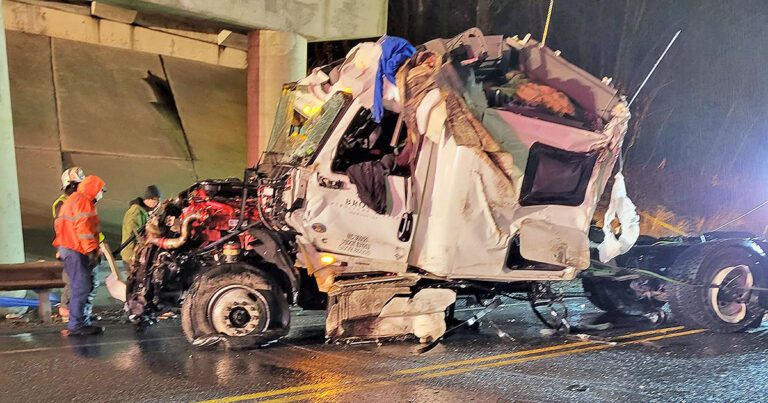 SCHUYLKILL COUNTY, Pa. — A March 3 crash along Interstate 80 in Pennsylvania ended with a tractor-trailer dangling from a bridge.