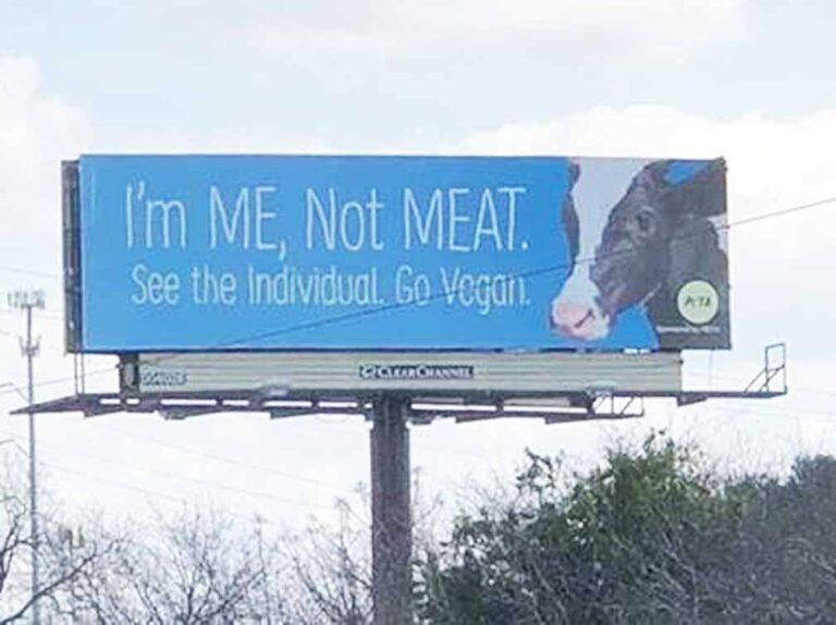 PETA’s billboard is located on I-10 East, exit 574 for I-37 South toward Corpus Christi.