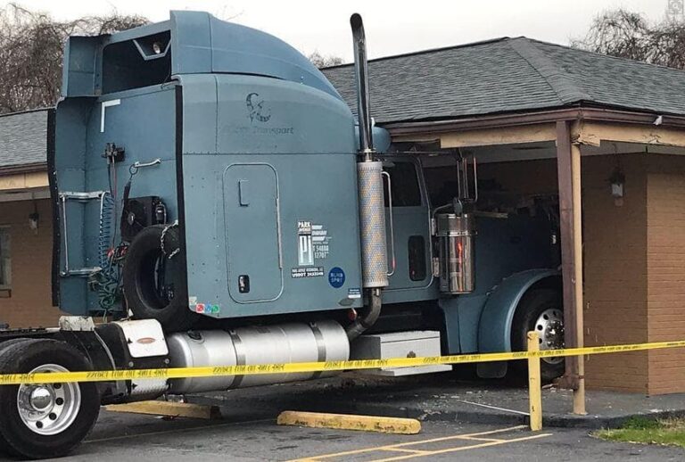 A woman was inside the motel room where the truck hit, but she was able to escape by climbing out of a back window, Channel 2 Action News reported.