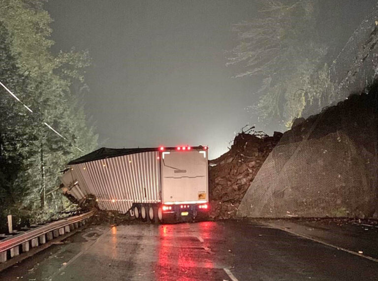 This section of U.S. 30 crosses an area where landslides have long been part of the geology, often triggered by heavy rainfall, according to ORDOT. A photo provided by ORDOT showed a wrecked big rig under landslide debris, though there were no reports of serious injuries.