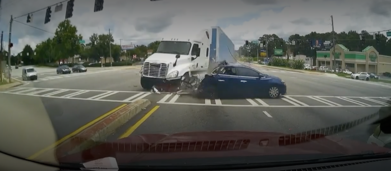 The semi-truck hit the car with so much power that it dragged the vehicle completely across the intersection. First responders took the victim to Grady Memorial Hospital for treatment where doctors found a blood clot in his head from the accident.