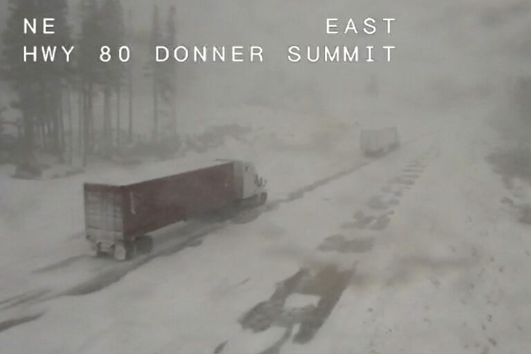 “Personnel are still working hard in clearing multiple vehicles stuck over Donner Summit so slow down!!” highway patrol tweeted from Truckee, California, east of the I-80 summit.