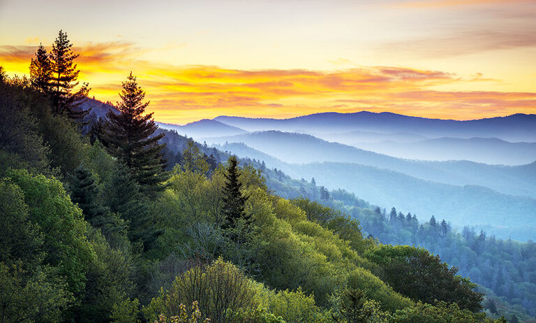 Great Smoky Mountains National Park is located on the Tennessee-North Carolina border and is the country’s most visited national park. Foothills Parkway West provides access to 16 scenic overlooks.