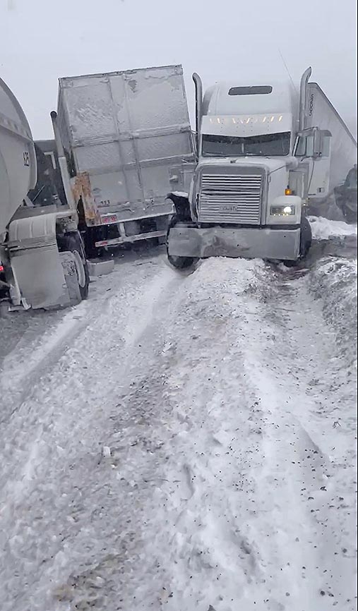 BLOOMINGTON, Ill. — A pileup involving about 100 cars, trucks and big rigs during a blinding snowstorm has left a 17-mile stretch of interstate in central Illinois shut down for a second day Friday.