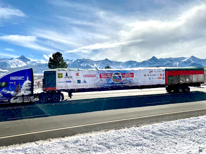 Harvested Nov. 6 from the Uncompahgre Plateau on the Ouray Ranger District, the 2020 U.S. Capitol Christmas tree is an Engelmann Spruce that stands 55 feet tall and is 25 feet wide. The massive spruce has been loaded onto a specialty trailer equipped with Spireon’s FL Flex trailer telematics solution that will allow the public to follow its journey. Between Nov. 10 and Nov. 20, the tree will make tour stops at several communities for a series of socially-distanced outdoor festivities held at fair grounds, schools, main streets, visitor centers, convention centers and retailers. In early December, the tree will be lit on the West Lawn during an official ceremony.