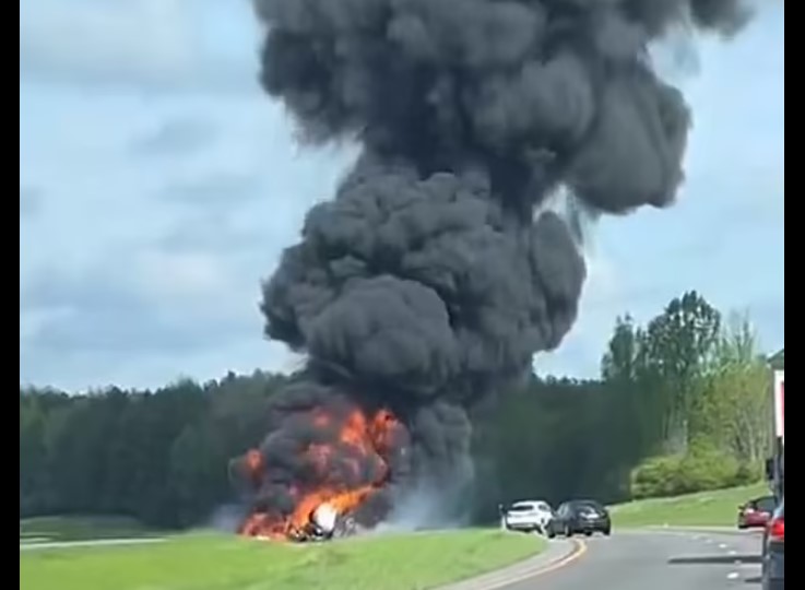 The Alabama Law Enforcement Agency said that a semi-truck hauling a tanker trailer overturned and that a “large oil fire” had ignited.
