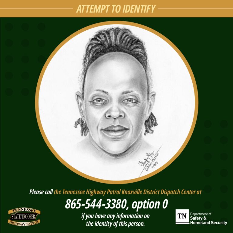 Investigators are actively seeking any information that may help determine her identity. If you have any information regarding her identity or any details on how she came to be at the above location, please call the THP Knoxville District Dispatch Center at 865-544-3380, option 0. The THP urges anyone with information that could aid in this active investigation to reach out.
