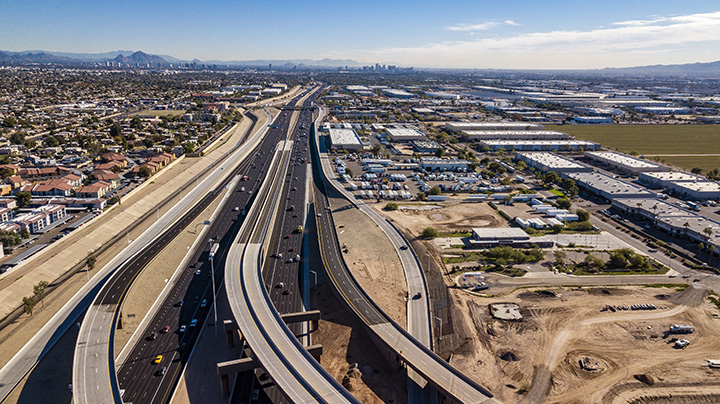ADOT used the public-private partnership method to hire a developer to design and build the 22-mile South Mountain Freeway as a single project rather than splitting it into several smaller projects. Part of a total investment of $2 billion, the 22-mile South Mountain Freeway opened to traffic in December 2019. The freeway provides a much-needed new connection between the state’s East and West Valley regions. Innovations include the developer remaining responsible for maintenance of the freeway for 30 years, providing a win-win partnership for taxpayers, motorists and ADOT.