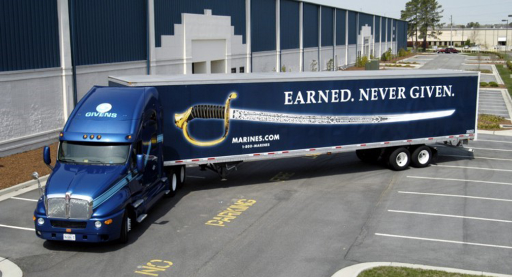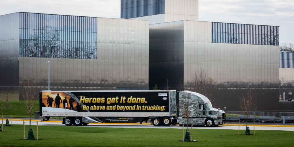 Givens Transportation, based in Virginia, actively recruits former and discharging service members. The company offers reimbursed driving school expenses and structured training, and provides a family-like atmosphere to help support service members during their transition from military to civilian life. Givens’ military truck, pictured below, recognizes the sacrifices of members of the U.S. Marines.