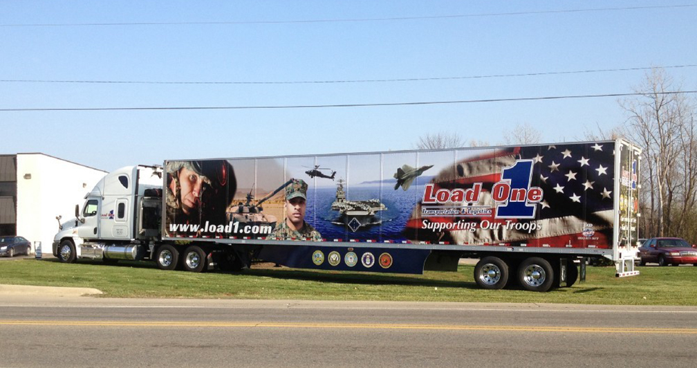 Load One, based in Michigan, shows its support for the nation’s troops with military wrapped trucks. The trucks, which travel American roads, include the message “Our freedom isn’t free. Thank you, veterans!”