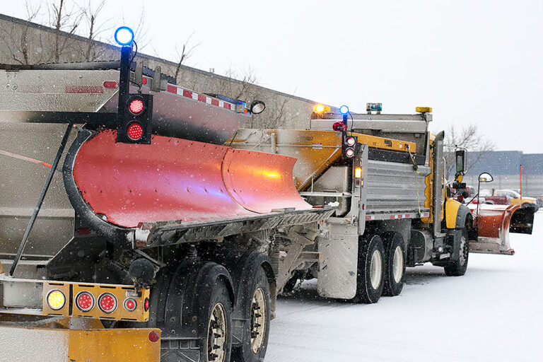 - Give plows room to work. WYDOT’s plow trucks have amber, red and blue flashing lights mounted on top of the cab, on the back of the sanders and a light on the wing plow. Snowplows are huge machines capable of moving tons of snow every minute. Like all vehicles, plows have blind spots; for safety, avoid following too closely.