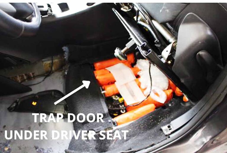 Photos from the bust show the drugs hidden in the in compartments under the floor of the trailer as well as under the floors at the foot of the driver and passenger seats.