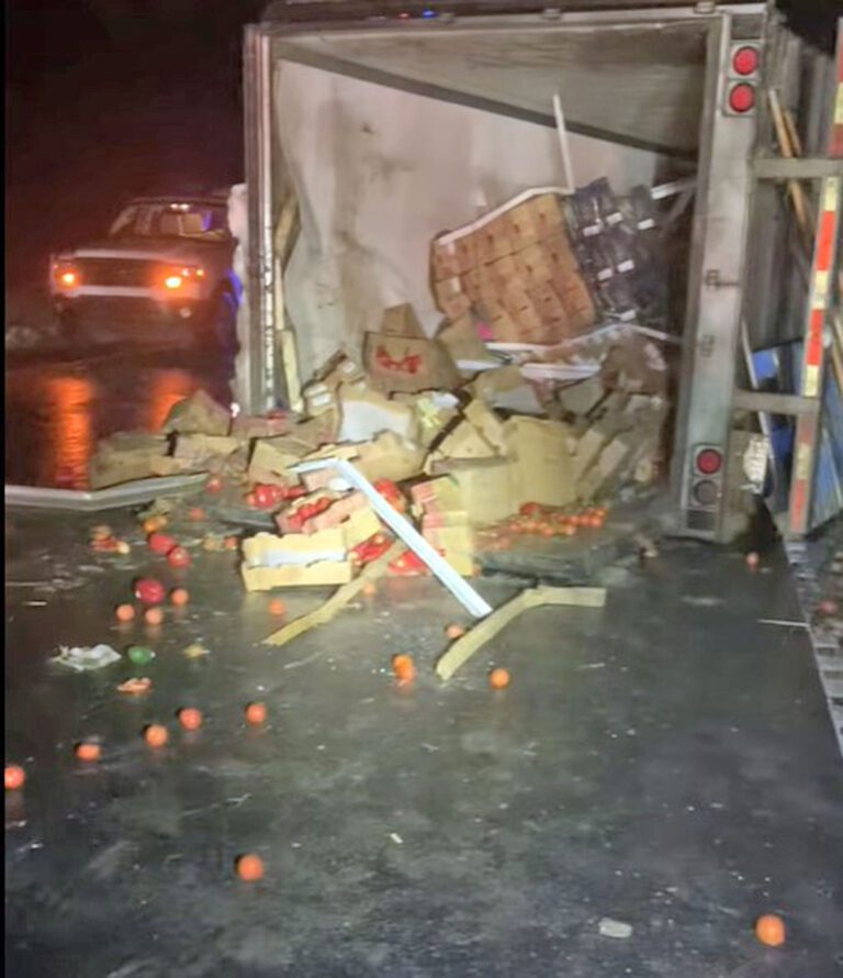 No word on what caused the wreck or what the truck was shipping, but video shows what appears to be produce.