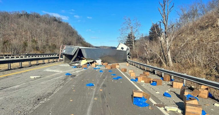 LOUISVILLE, Ky. – A tractor-trailer rolled over and spilled frozen McChicken patties onto Interstate 71 in Henry County, Kentucky, causing the roadway to shut down for several hours on Saturday, Jan. 14.