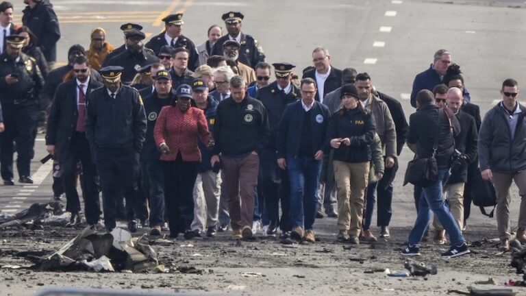 PHILADELPHIA (AP) — The impact area where a medical transportation plane crashed in Philadelphia was notably “expansive,” U.S. Transportation Secretary Sean Duffy said Monday after viewing the site with investigators and city officials.