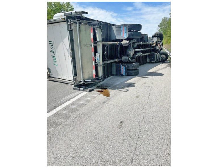 Polk then overcorrected, causing his semi to tip over onto the driver’s side. Cadet immediately applied his brakes as Polk’s overturned truck continued sliding westbound, eventually coming to rest in front of Cadet’s stopped rig, according to the police report.